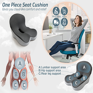 This Cushion is built differently. The coccyx cut-out relieves tailbone pressure, while the built-in lumbar panel fills the gap behind your back torestore healthy posture. High-density memory foam spreads weight evenly across your hips and thighs, keeping blood flowing so your legs don’t go numb.
